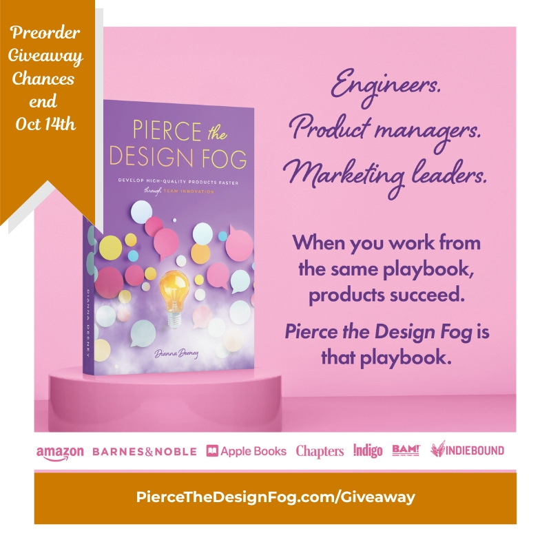 I wrote Pierce the Design Fog to be a useful, non-boring book. Visit its website to learn more about it. Preorders are available now from your favorite book seller. Launches October 15th! PierceTheDesignFog.com.